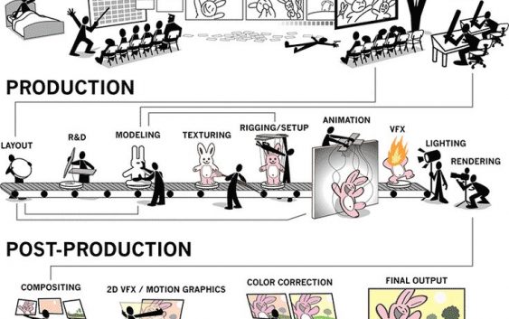 - Design: É a etapa onde se faz os Concept Arts e o desenvolvimento visual dos personagens (proporções, poses, aparência), Ambientes e objetos da cena e estudo e definição dos esquemas de cores.