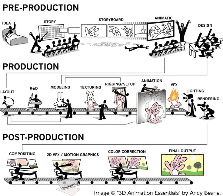 - Animatic: É a união do storyboard com as vozes e sons gravados para testar se a história funciona, com seus tempos e pausas.